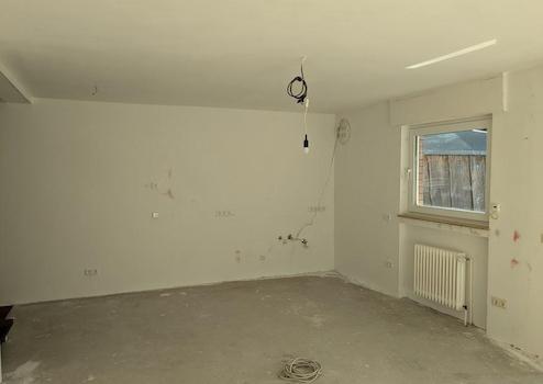 Die Wände und Decken sind jetzt aufgearbeitet worden und der Boden ist frei vom alten Bodenbelag.