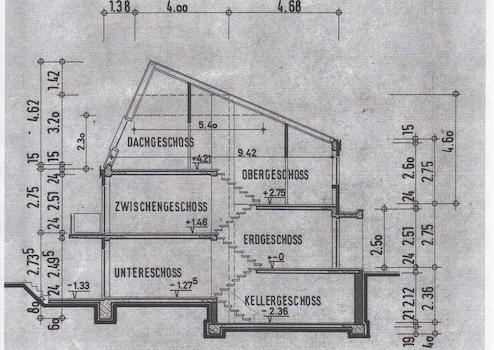 Das Haus verfügt über 5 Halbetagen, einen Halbkeller, ein offenes Treppenhaus und eine Garage im Haus.