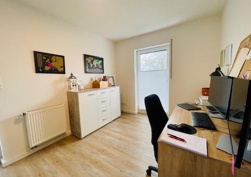 Die Aufteilung und Ausstattung der Wohnung ergibt sich wie folgt: Eingangsbereich bzw. Diele, ein gut geschnittenes Kinderzimmer bzw. Büro, ein modernes Tageslichtbad mit Badewanne, Dusche, Waschtisch, WC und Fußbodenheizung, ein heller und großzügiger Wohn- Essbereich mit bodentiefem Ausgang auf den sonnigen Balkon mit Süd-West-Ausrichtung, ein schönes Schlafzimmer und eine hübsche Küche (die Küche ist Eigentum des derzeitigen Mieters und kann auf Wunsch übernommen werden - Preis VHS). Im Flur- und Wohnbereich liegen sandfarbene Fliesen, das Bad wurde mit einer modernen grauen Bodenfliese ausgestattet - die Wände sind weiß gefliest; im Büro wurde Vinylboden verlegt. Zu der Wohnung gehören ein Kellerraum, ein eigener Waschkeller und ein Stellplatz auf der gepflasterten Hoffläche. Das derzeit bestehende Mietverhältnis endet am 01.02.2026.