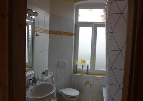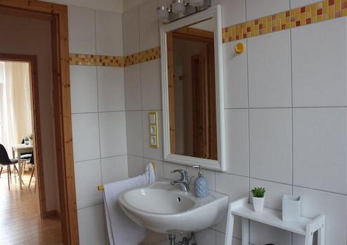 Das moderne, helle Badezimmer wurde erneuert und verfügt über eine Badewanne. Im Keller stehen eine Waschmaschine und ein Trockner zur gemeinschaftlichen Nutzung gegen Entgelt sowie ein großer Trockenraum zur Verfügung.