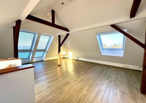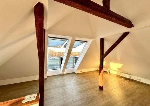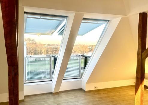 Im Dachgeschoss finden sie einen großen, loftartigen und lichtdurchfluteten Raum mit zwei großen Balkon-Fenstern welche einen unverbauten Blick auf die Mainwiesen ermöglichen.
