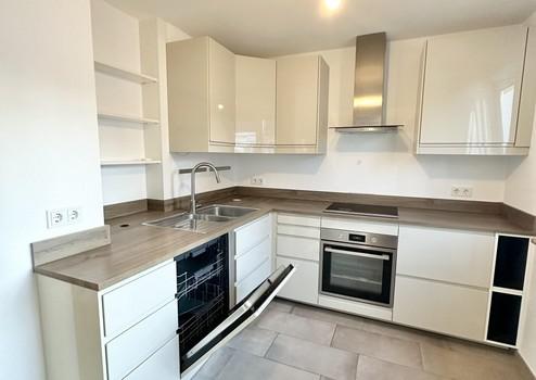 Die hochwertige Einbauküche ist komplett inkl. Spülmaschine, Herd und Dunstabzugshaube ausgestattet.