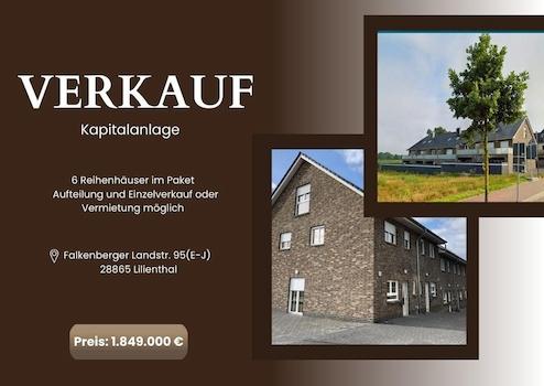 Zum Verkauf steht ein modernes Reihenhausensemble mit 6 Wohneinheiten in gefragter Lage von Lilienthal-Falkenberg (28865), nur wenige Minuten von Bremen entfernt.