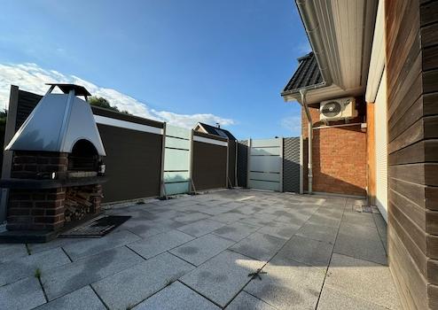 Dieses außergewöhnliche Einfamilienhaus besticht durch seine elegante Architektur und hochwertige Ausstattung. Das Haupthaus wurde in massiver Blähbetonbauweise errichtet und mit edlem Klinkervollziegel verkleidet, während der Anbau durch eine Holzfassade aus brasilianischer Rotzeder seinen ganz eigenen Charme versprüht.