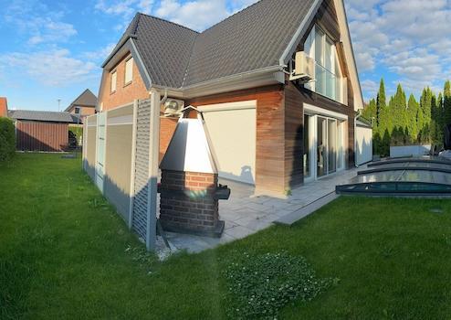Das Haus, ursprünglich im Jahr 2003 aus massivem Blähbeton erbaut, wurde 2014 durch einen zweigeschossigen Anbau erweitert. Der Hauptbau ist mit holländischem Handstrichklinker verkleidet, während der Anbau durch brasilianische Rotzeder im Cekosystem besticht. Das komplett erneuerte Dach wurde mit Tonziegeln gedeckt, während äußere Verkleidungen und der Carport edel mit Schiefer gestaltet sind.