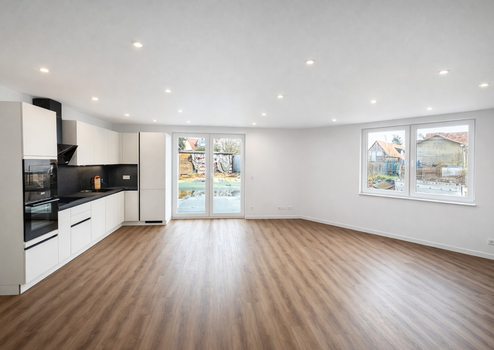 Raumaufteilung •3,5 Zimmer (davon 2 Schlafzimmer) •Großzügiger Wohn-/Essbereich mit Zugang zur Terrasse •großer Hauswirtschaftsraum/ Vorratsraum •Modernes Bad •Gäste-WC Objektzustand: Erstbezug nach Sanierung