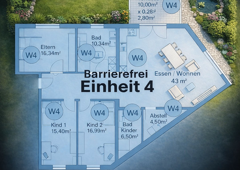 In einem modernen Mehrfamilienhaus mit 18 hochwertig ausgestatteten Wohneinheiten entstehen attraktive Mietwohnungen in nachhaltiger Bauweise. Hier verbindet sich zeitgemäßer Wohnkomfort mit energieeffizienter Technik – ideal für alle, die ruhig und dennoch gut angebunden wohnen möchten.