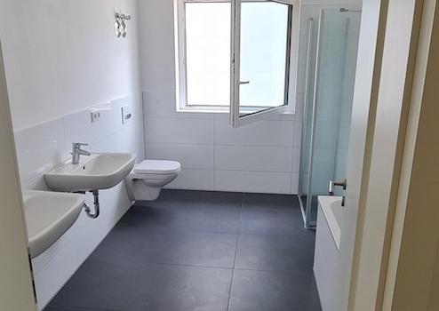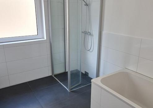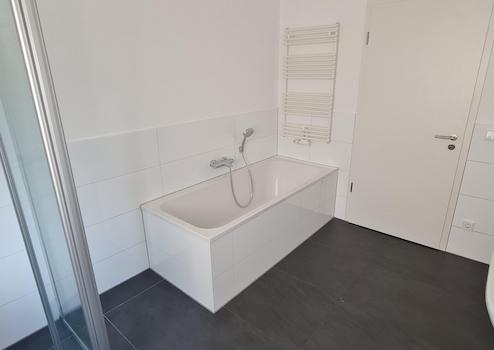 Ein besonderes Highlight ist das hochwertig ausgestattete Badezimmer. Dieses verfügt sowohl über eine bodentiefe Dusche als auch über eine Badewanne und bietet damit maximalen Komfort – ideal für eine schnelle Erfrischung ebenso wie für entspannte Wellness-Momente. Die moderne Ausstattung und die klare Gestaltung verleihen dem Bad eine zeitlose Eleganz.