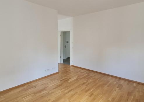 Der großzügige Wohn- und Essbereich bildet das Herzstück der Wohnung. Große Fensterflächen sorgen für viel Tageslicht und schaffen eine freundliche, einladende Atmosphäre. Von hier aus gelangen Sie auf den Balkon, der zusätzlichen Wohnkomfort bietet und zum Entspannen im Freien einlädt – sei es beim Frühstück am Morgen oder beim Ausklang des Tages.