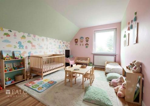 Das Obergeschoss ergänzt das Raumangebot mit weiteren Zimmern, die sich flexibel als Schlaf-, Kinder-, Gäste-, oder Arbeitszimmer nutzen lassen. Ein weiteres Bad im Obergeschoss mit separatem Gäste-WC sorgt für kurze Wege und eine praktische Trennung der Bereiche. Insgesamt ist es ein Haus, das sowohl im Familienalltag als auch bei Homeoffice-Bedarf überzeugende Möglichkeiten bietet.