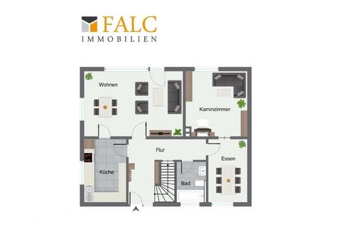 Gegenüber der Küche liegt das Esszimmer, von dem aus ein besonderes Highlight des Hauses betreten wird: Das Kaminzimmer! Der offene Kamin schafft hier eine ganz besondere Atmosphäre und macht den Raum in der kalten Jahreszeit zu einem gemütlichen Rückzugsort für die ganze Familie. Das Badezimmer im Erdgeschoss erhöht den Komfort im täglichen Ablauf und wurde 2020 saniert.
