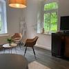 Passend zum denkmalgeschützten Mehrfamilienhaus bietet Ihre neue Wohnung einen Stilmix aus vintage und modernen Einrichtungselementen. Die EG-Wohnung ist komplett möbliert und kann darüber hinaus ebenfalls individuell auf Ihren Geschmack angepasst werden.