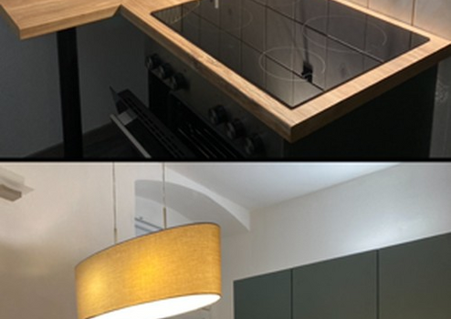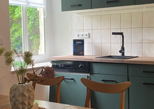 Besonders der neue Kamin (Eco-Design – 6,4 kW) bietet wohlige Wärme und das besondere Ambiente. Die 50 qm-Wohnung verfügt über eine neue Einbauküche inkl. Elektrogeräte, deren Nutzung im Mietzins enthalten ist.