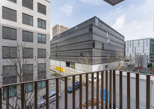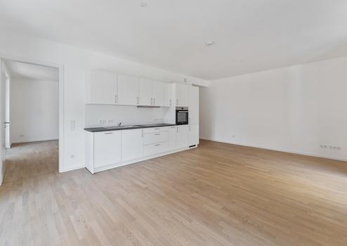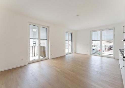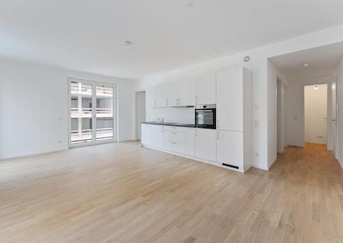 Die sehr helle und ruhige Wohnung bietet bodentiefe Fenster und verfügt über einen Wohn- und Essbereich, welcher mit einer hochwertigen Küche ausgestattet ist und Zugang zum Balkon ermöglicht.