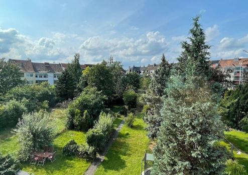 Eine herrliche Wohnung mit hohen Decken und tollem Blick in den Gartenpark.