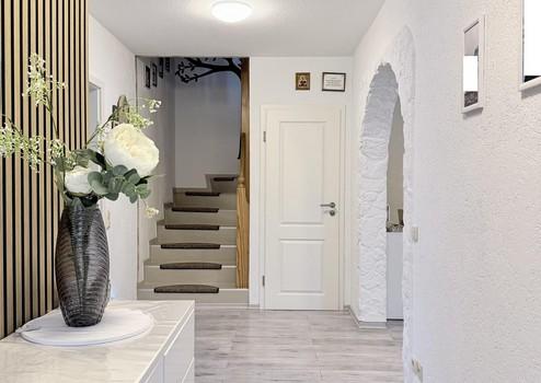 Innenausbau: Neue Bodenbeläge, moderne Zimmertüren und frische Malerarbeiten.