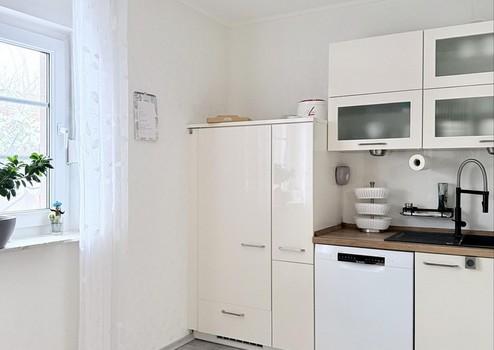 Küche & Bad: Hochwertige Einbauküche und modernisierte Sanitärobjekte.