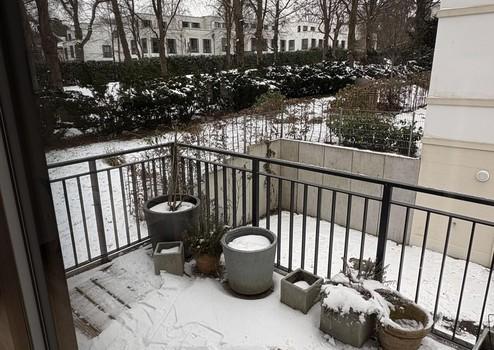 Große Fensterflächen auf drei Seiten sorgen für viel Licht und Privatsphäre. Der Balkon (ca. 8 m²) ist nach Süden ausgerichtet und bietet einen schönen Blick ins Grüne. Dabei ist die Wohnung von außen kaum einsehbar.