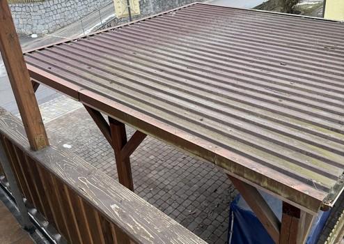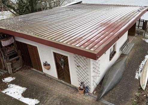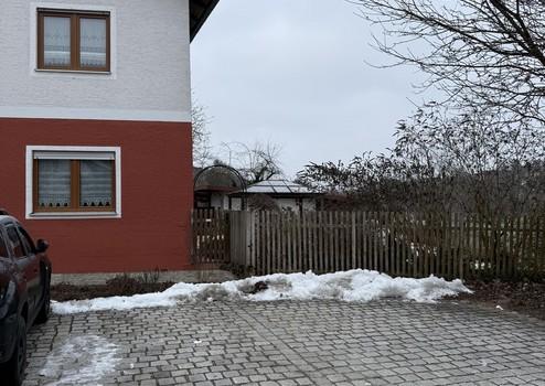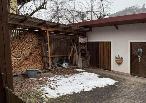 Der Carport fasst 3 Fahrzeuge, dahinter befindet sich der Gartenschuppen mit 3 getrennten Räumen.