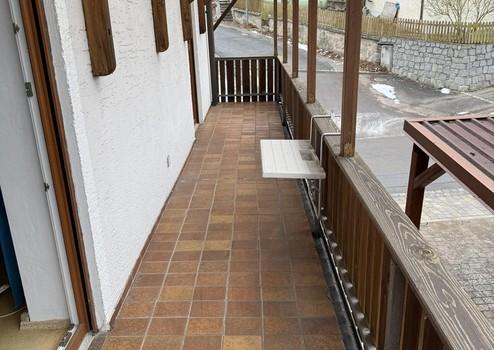 An einer Seite, sowie zum Fluss hin befindet sich der Balkon.
