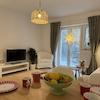 The apartment features a cozy bedroom that can be flexibly arranged with two single beds or one double bed. The bright living room invites you to relax and also includes a sofa bed, providing sleeping space for up to two additional guests. This makes the apartment ideal for couples, families, or business travelers.