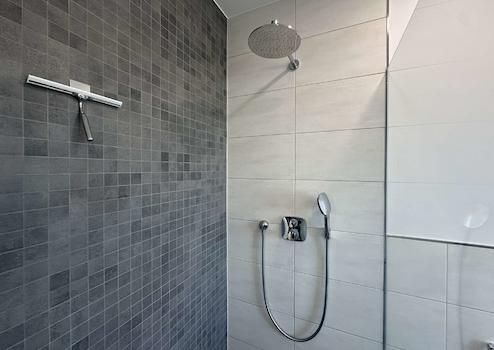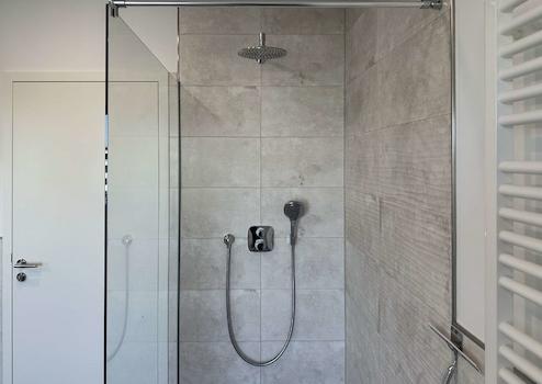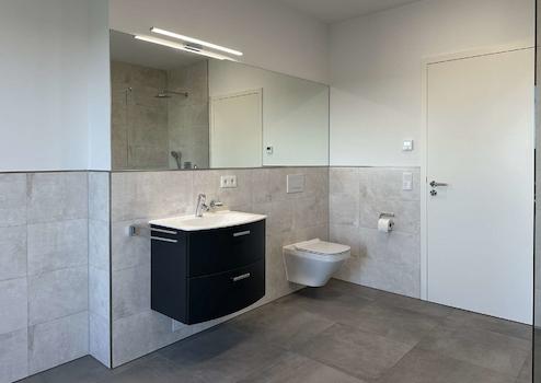 Das Luxus-Master-Badezimmer besticht durch seine Ausstattung mit keramischen Fliesen, einem Saunaanschluss sowie einer Marken-Sanitärausstattung und wird somit zur kleinen Wohlfühloase in der eigenen Wohnung.