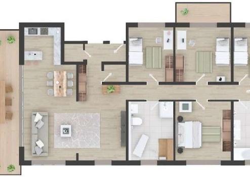 Die weiteren toll geschnittenen vier Zimmer können vielfältig als Schlaf-, Arbeits- oder Kinderzimmer genutzt werden. Ein Zimmer verfügt über einen Balkonzugang.