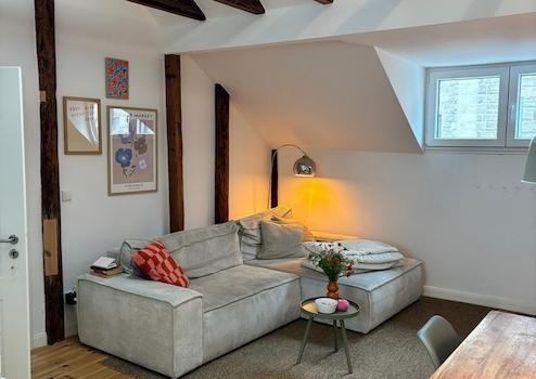 Das denkmalgeschützte Altstadthaus wurde liebevoll saniert. Die charmante, mit Sichtbalken bestückte Wohnung im Dachgeschoss hat einen offenen Grundriss mit einem abgeschlossenen Schlafzimmer. Das Tageslichtbad ist mit ...