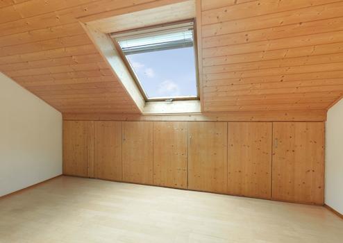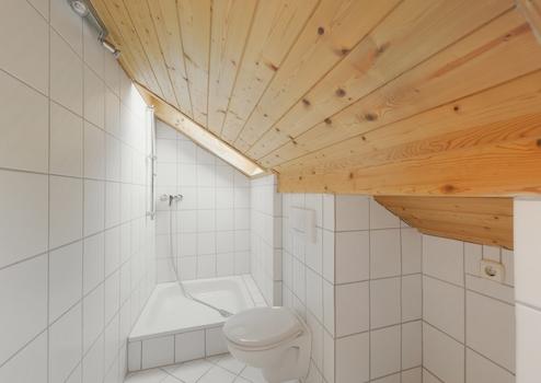 Das Dachgeschoss ist ebenfalls ausgebaut und erweitert die Wohnfläche um drei Räume und ein Badezimmer.