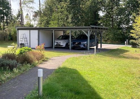 Doppelcarport, Geräteschuppen, drei weitere PKW-Stellplätze