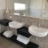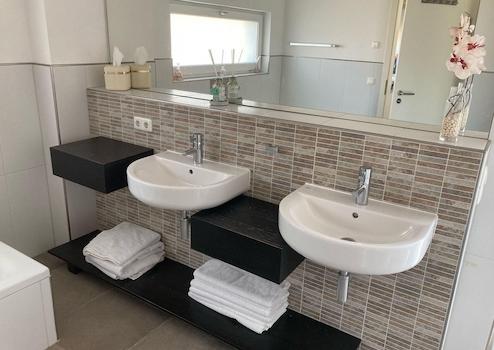 - großzügiges Badezimmer mit Doppelwaschtisch, Badewanne und Dusche