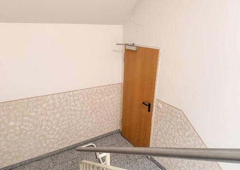 Das Badezimmer verfügt über eine Badewanne, ein Waschbecken, ein WC sowie einen Waschmaschinenanschluss. Ein großer geräumiger Flur sowie eine geräumige Abstellkammer auf halber Treppe rundet das Platzangebot ab.