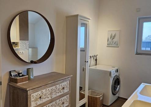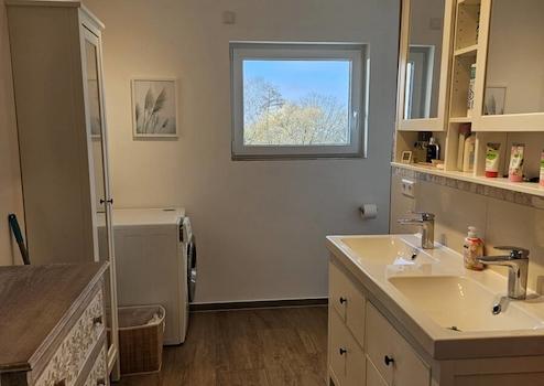 Aktuell wurde die Waschmaschine in diesem Badezimmer aufgestellt, da der Platz dafür vorhanden ist.