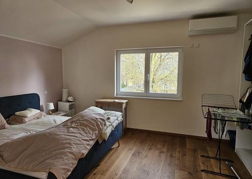 Links neben dem Wohnzimmer befindet sich ein weiteres (Schlaf-)Zimmer. Außerdem wird das Angebot auf dieser Etage mit einem modernen, großzügigen Badezimmer mit Dusche und Badewanne abgerundet.