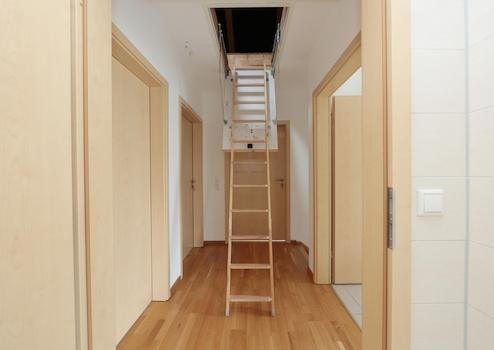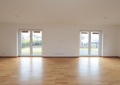 Fenster und Terrassentüren verfügen über Außenjalousien mit Zeitschaltuhr. Die Innentüren sind schwellenlos und 1 m breit für bequemen Durchgang. In das OG gelangt man über die Buchenholztreppe. Mit nachgerüstetem Treppenlift wäre das ganze Haus barrierefrei, zumal es auf ebener Erde zugänglich ist. Das ist vorteilhaft für Kinderwagen und -karren, Einkaufswagen und Koffer. Gegenüber dem Standard wurde das Haus im EG um 10 cm aufgestockt, harmonisch passend zu den großzügigen Wohnflächen. Besucher melden sich über die Video-Sprechanlage an.