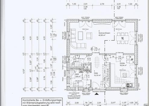Das lichtdurchflutete Haus von 164 m² Wohnfläche (vier große Zimmer und 3 Bäder mit Fenstern) ist äußerst komfortabel, so daß man gern darin wohnt und sich darin sehr wohlfühlt. Es ist voll verklinkert mit Hinterlüftung und gut gedämmt mit Dreischeibenfenstern. Energiesparend wird das Haus zentral von einer Wärmepumpe beheizt. Die Temperatur der Fußbodenheizung unter Fliesen und Eichenparkett ist individuell regulierbar. Zwei Sonnenkollektoren bereiten Warmwasser. Die zentrale Be- und Entlüftungsanlage mit Wärmerückgewinnung sorgt für stetige frische Luft.