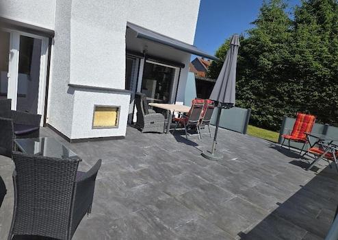 Terrasse, Garten, Keller, Vollbad, Duschbad, Einbauküche, Gäste-WC, Kamin, Laminat, Teppichboden, Fliesen