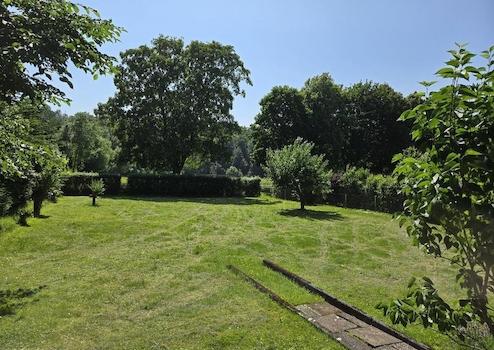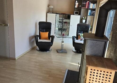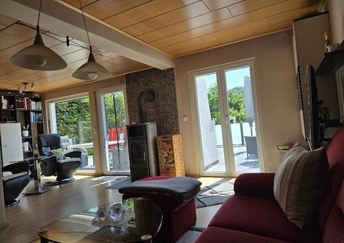 Vom Seiteneingang gelangt man in die separate Wohnung im Obergeschoss mit ca.70m² und einem Badezimmer mit Dusche und Badewanne aus 2021.Zusätzlich dürfen die 3 Öfen im Haus weiter genutzt werden. Für das 614qm Rasengrundstück ist ein Mähroboter vorhanden. Der Energieausweis "F" liegt vor. Glasfaseranschluss ist vorhanden.