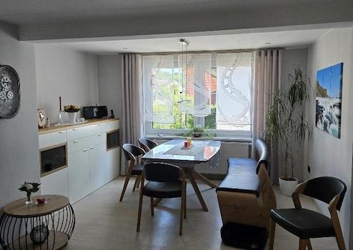 Das hier zum Verkauf stehende Zweifamilienhaus in Badenhausen kann auch gut als Mehrgenerationenhaus genutzt werden. Es handelt sich um ein Fachwerkhaus, BJ ca.1900 mit Anbau von BJ 1962 und Grundrissänderung BJ 1975.Das Haus hat eine Wohnfläche von ca.262m², von denen sich ca. 146m² auf das Erdgeschoss verteilen, und die verbleibenden ca. 116m² auf das Obergeschoss, ohne Schrägen. Das Dachgeschoss kann noch vollständig ausgebaut werden. An Nutzfläche stehen weitere ca. 140m² zur Verfügung ( 5 Kellerräume ca. 85m²,Doppelgarage ja.33m²,Schuppen ca.9m² ,Holzschuppen ca.3m² und ein Gewölbekeller ca.10m².Vom Wohnzimmer des EG geht es direkt auf die ca. 60m² große Terrasse mit 90/45/3cm Keramikfliesen, Glasumrandung, elektrischer Markise aus 2022/2023 und Außenkamin. Die Küche im Erdgeschoss hat eine separate Abstellkammer und ist mit einer Verbindungstür ins Esszimmer ausgestattet. Das Haus wurde regelmäßig instandgehalten und ist in den letzten 14 Jahren bis auf das Dach komplett saniert+ modernisiert wurden, inkl. Türen, Heizkörpern, Bodenbelegen, Fenstern inkl. Rollläden zum Teil elektrisch, Innenkamin, Bädern, Heizung, Einbauküchen, Elektrik, Wasserleitungen, Garage inkl. Dach+ Sektionaltor, der Hof ist neu gepflastert, Sicherheitshaustüren vorne und am Seiteneingang, Dämmung des Altbau, die Fassade wurde komplett verputzt und gestrichen, die Kellertreppe erneuert sowie die komplette Drainage um Keller/Terrasse inkl. neuer Kellerfenster. Die Dachkehle und der First sind ebenfalls aus 2024, sowie ein neues Velux Dachgeschossfenster= Ausstieg Schornsteinfeger.