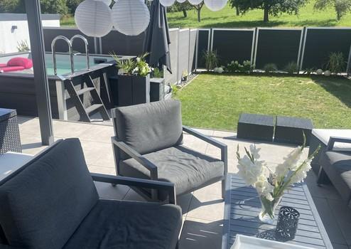 Das Grundstück bietet Platz zum Leben und Genießen. Die große Terrasse lädt zu geselligen Abenden und entspannten Stunden im Freien ein. Der gepflegte Garten bietet vielfältige Nutzungsmöglichkeiten für Familien mit Kindern oder Gartenliebhaber.