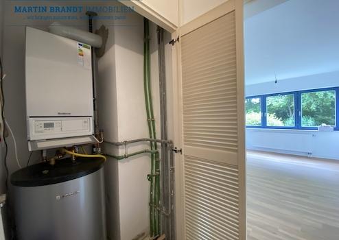 Die Wohnung verfügt über eine neuwertige und eigene, in der Diele befindliche Gasetagenheizung (Baujahr 2021) mit Warmwasseraufbereitung. Die Kosten für die Heizung und Warmwasser, können somit direkt mit dem Energielieferanten abgerechnet werden.