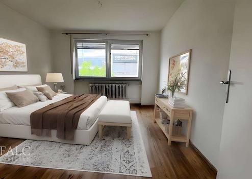 Der großzügige Wohn- und Essbereich öffnet sich zur sonnigen Loggia, von der aus Sie die Aussicht in die Ferne genießen können. Ein Platz zum Entspannen, Auftanken und Wohlfühlen – hoch über der Stadt.