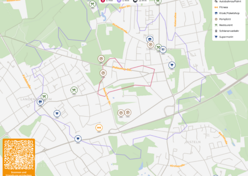 Freizeit und Ausgleich kommen ebenfalls nicht zu kurz: Sportmöglichkeiten wie ein Sportcenter sowie eine Sporthalle befinden sich in der Nähe, und ein Fitnessstudio ist in ca. 1 km erreichbar. Für den Feierabend bieten sich Restaurants in der Umgebung an, zum Beispiel Kaplan's Döner und Pizza in ca. 0,6 km Entfernung. Eine Postfiliale liegt ebenfalls in der Nähe, was den Alltag zusätzlich erleichtert. Insgesamt überzeugt die Lage durch eine ausgewogene Mischung aus guter Erreichbarkeit, praktischer Infrastruktur und passenden Angeboten für Freizeit und Versorgung.
