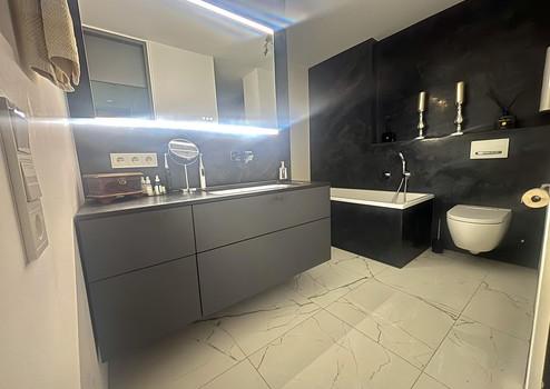 Die Wohnung verfügt über eine moderne Einbauküche, hochwertige Badmöbel, sowie maßgefertigte Stauraumlösungen, unter anderem im begehbaren Kleiderschrank und im Abstellbereich.