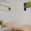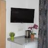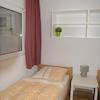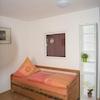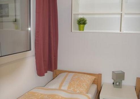Es gibt einen separaten Raum mit Fenster zum Wohnraum zum Schlafen für ein Einzelbett oder ein Doppelbett, ebenfalls mit einem TV-Anschluss