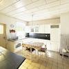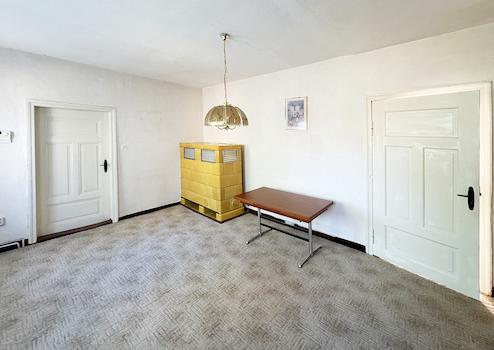 Das Wohnzimmer kann zusätzlich von der Küche aus über einen Kachelofen beheizt werden.