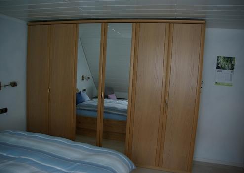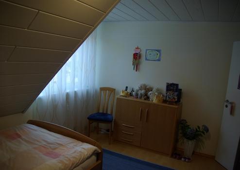 Der Schnitt der Wohnung ist sehr gut. Das OG umfasst zwei Schlafzimmer, ein Bad (mit Doppelwaschtisch, Duschkabine und WC) und eine Garderobe neben der Eingangstür.