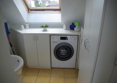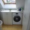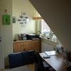 Das DG verfügt neben dem Wohn- / Esszimmer und der Küche über ein Büro/Kinderzimmer und eine Toilette mit Waschbecken und Einbaumöbeln für Waschmaschine und Trockner.