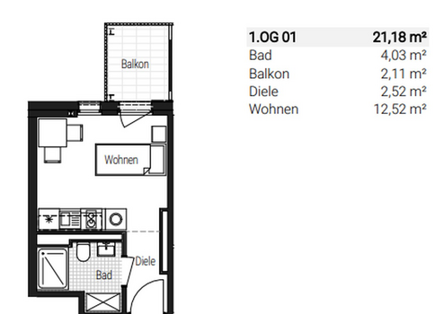 Diese moderne, vollmöblierte 1-Zimmer-Neubauwohnung im 1. Obergeschoss überzeugt mit einer optimalen Raumaufteilung auf ca. 21,18 m² Wohnfläche sowie einem eigenen Balkon.