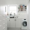 Bereits von außen besticht das Haus durch eine stilvolle Fassadengestaltung aus weißem Putz und anthrazitfarbenem Klinker. Elemente aus Edelstahl und Zink setzen elegante Akzente und unterstreichen den modernen Charakter des Hauses. Das flach geneigte Walmdach fügt sich harmonisch in das Gesamtbild des zweigeschossigen Gebäudes ein.
